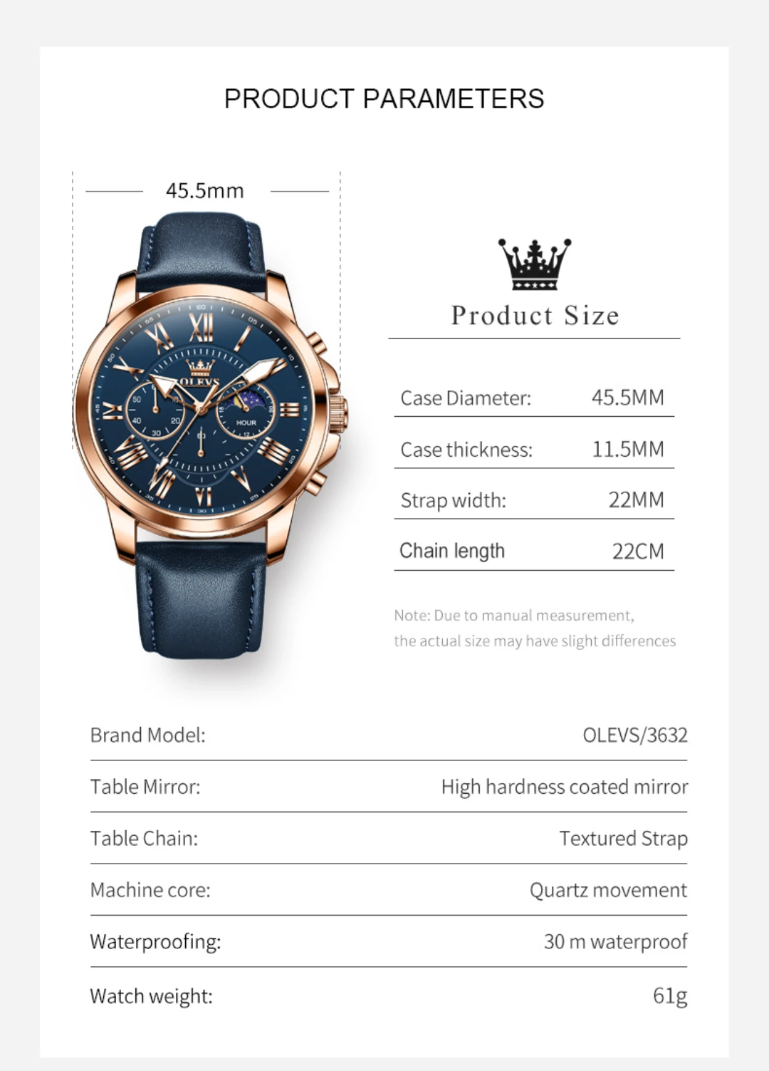 The latest Price of Olevs 3632L For Men – Blue in Bangladesh is ৳ 2190. You can buy it online at the best price from our website or visit our store.